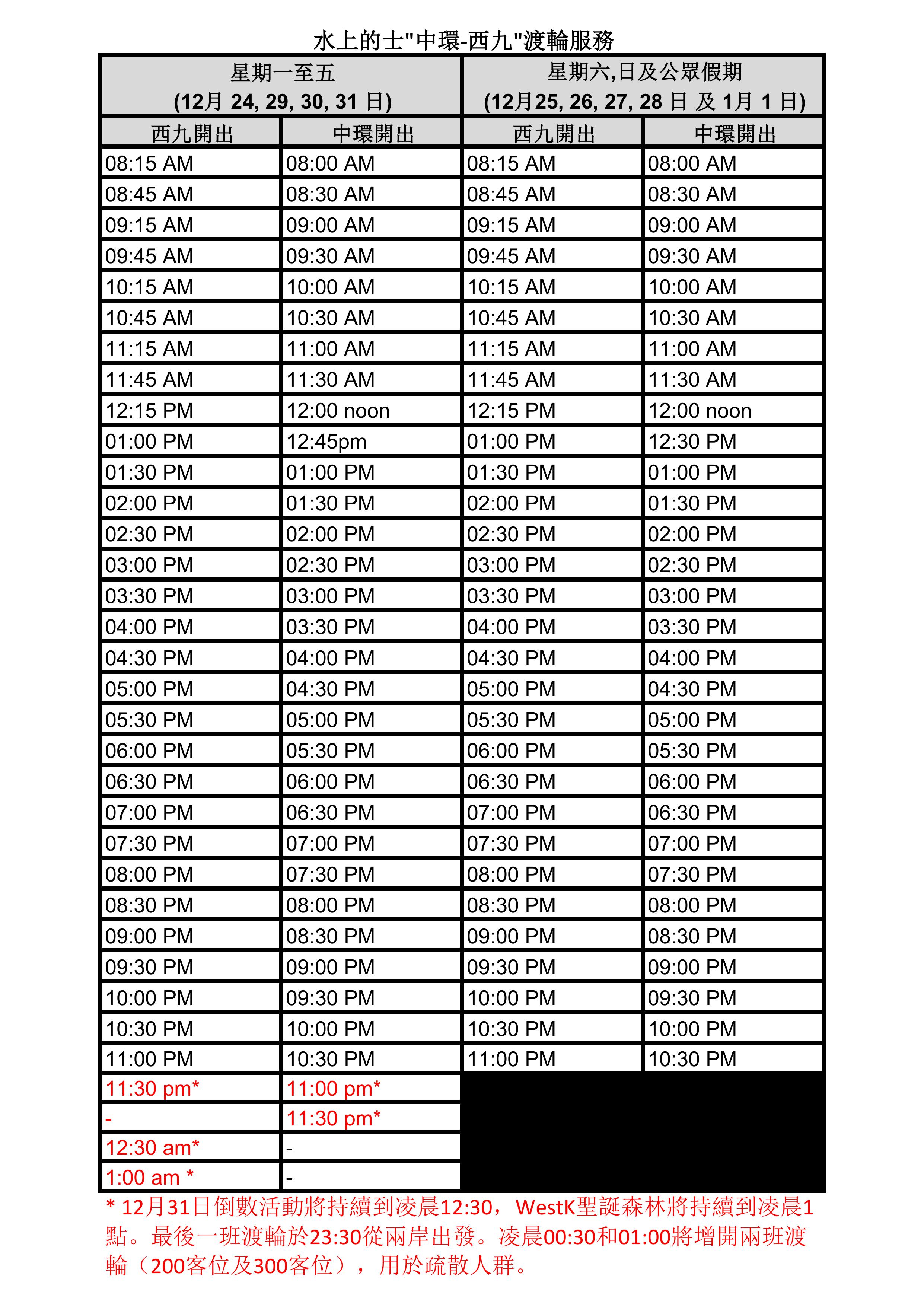 因應節日人流眾多,為提供更好的渡輪服務,往來中環西九航線班次進行以下調動